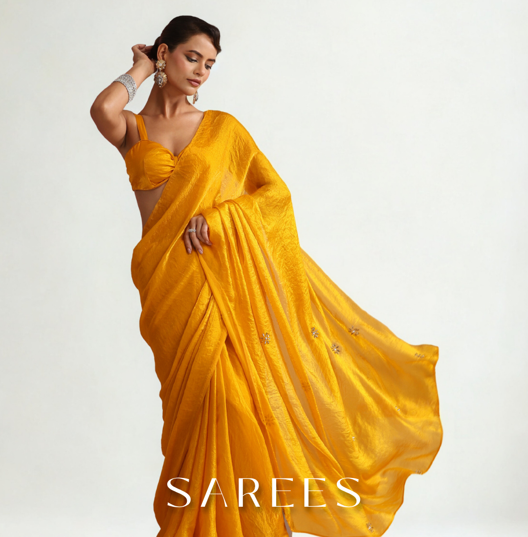 Satin Terracotta Saree with Swarovski-Style Lace & Self Blouse Fabric