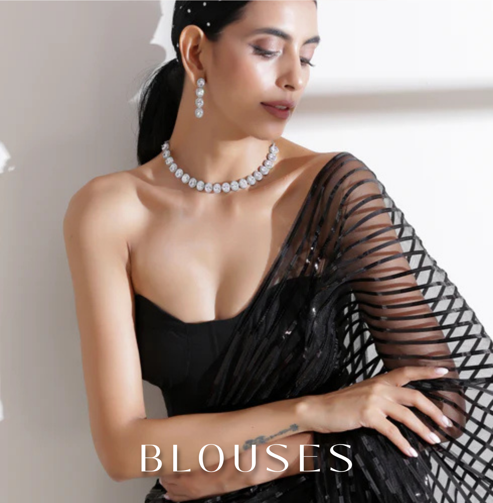 Born Pretty Chevron Triangle Satin Saree with Blouse fabric